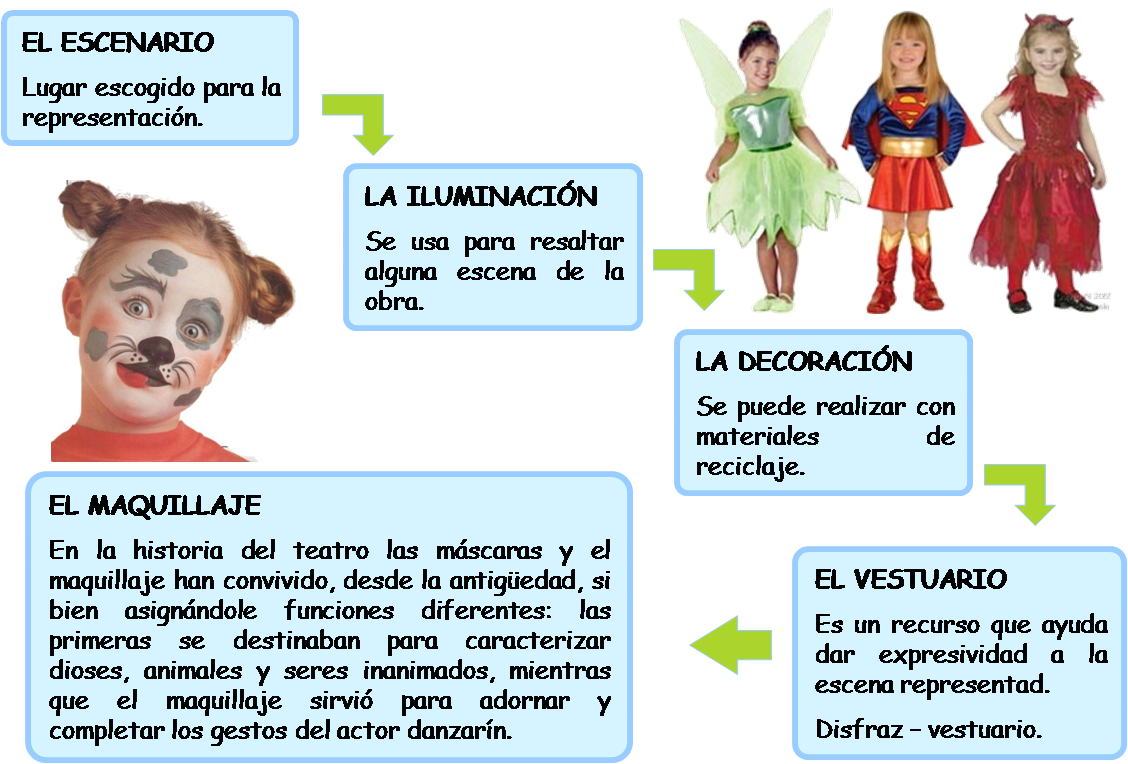 Encontraréis una breve explicación sobre el teatro y sus características al nivel de cuarto de primaria.